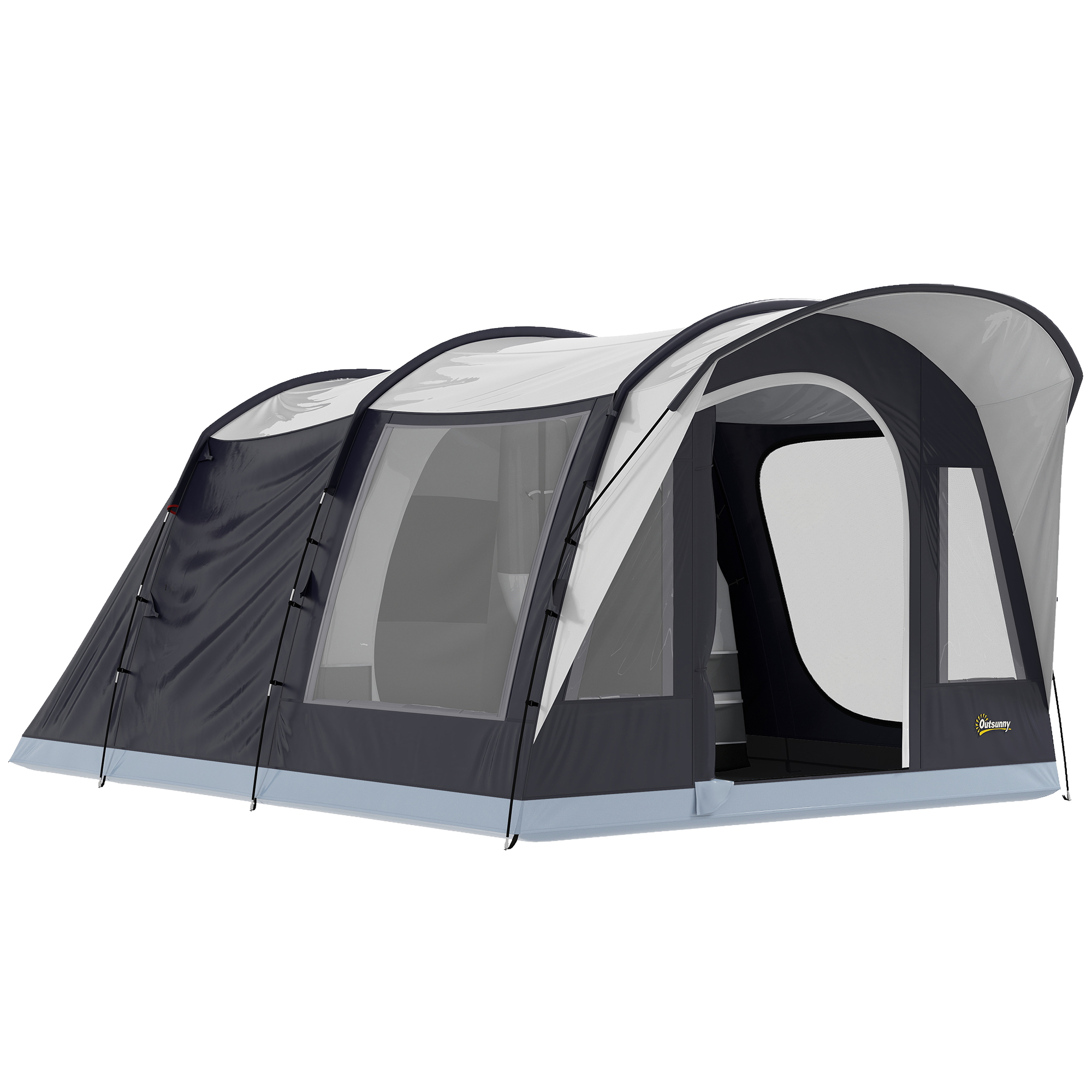 Outsunny Cort de Camping Tunel pentru 2-4 Persoane, Înălțime 213cm, cu 2 Camere, Cort Familial Impermeabil 3000mm cu Verandă, Ferestre, Buzunare, Cârlig și Geantă de Transport, Bleumarin | Aosom Romania