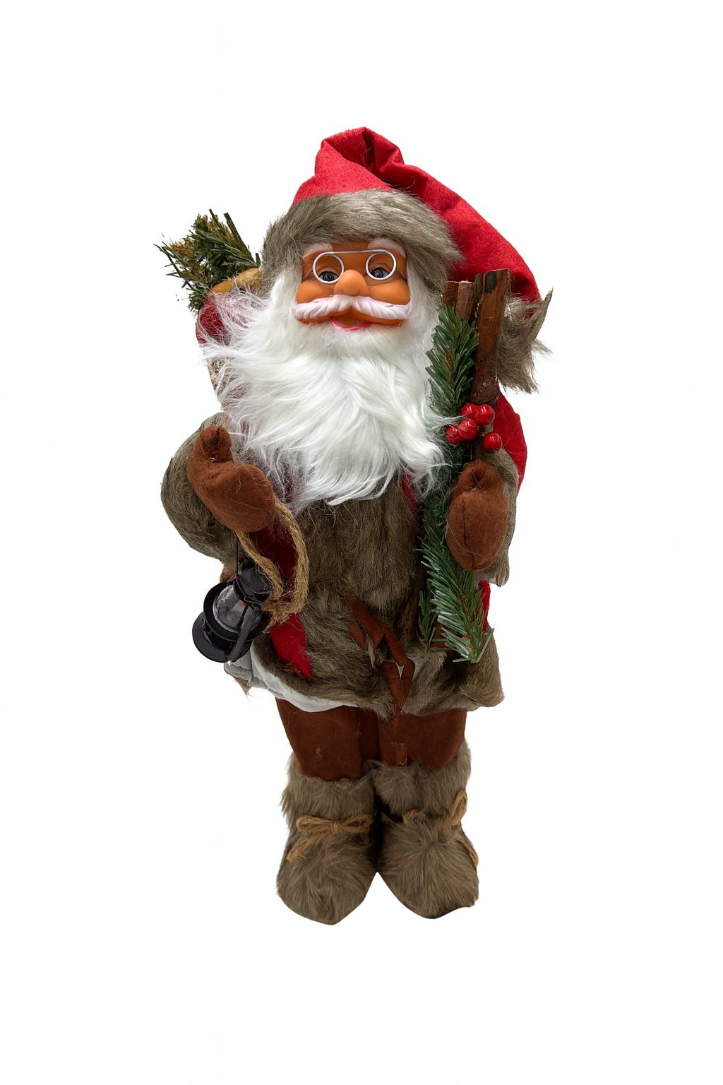 Decoratiune Mos Craciun rustic cu felinar si ochelari 45cm