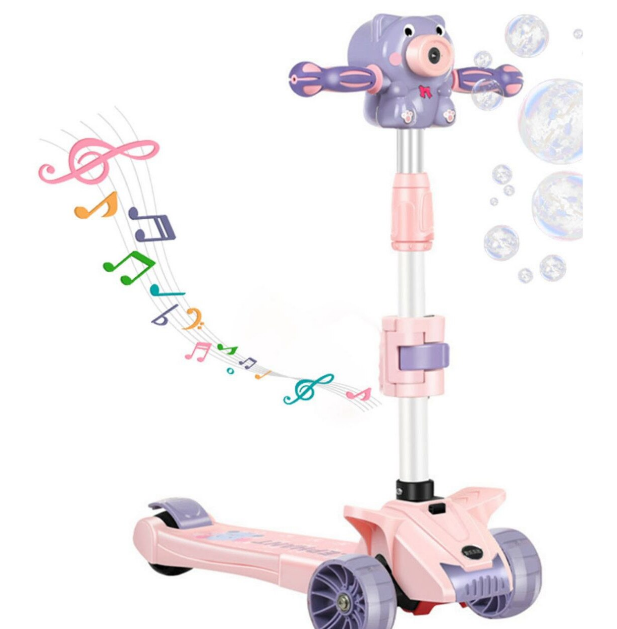 Trotineta ursulet Roz. 3 Roti, cu Lumini, Muzica si face Baloane de Sapun