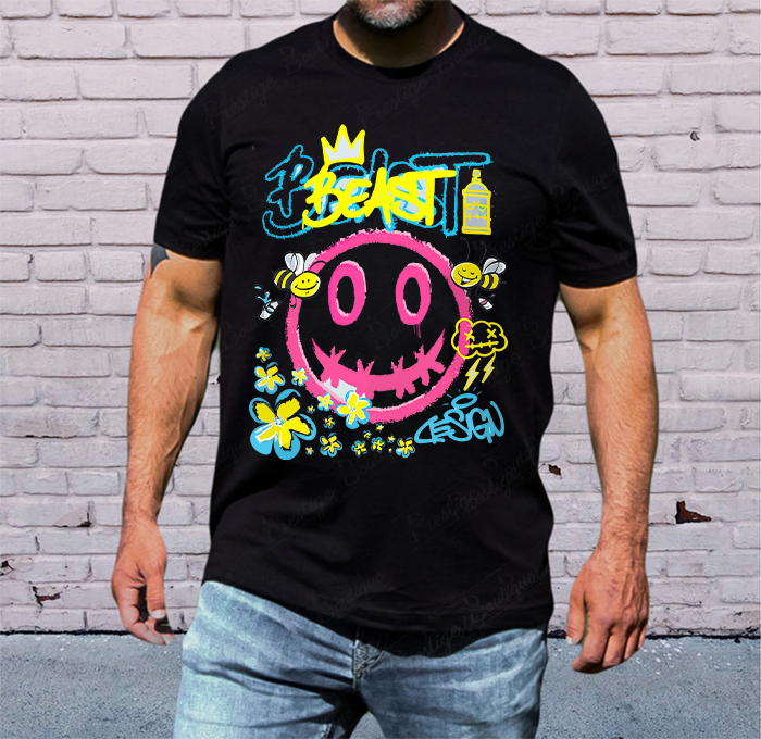 TRICOU BARBAT SMILE FACE PRINT ANGRO