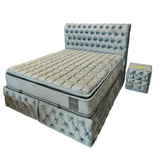 Set Pat Chester + Saltea Raysa Premium, ladă depozitare, somieră metalică fixă, tapițerie catifea baby face 160x200 cm, Culoare personalizată