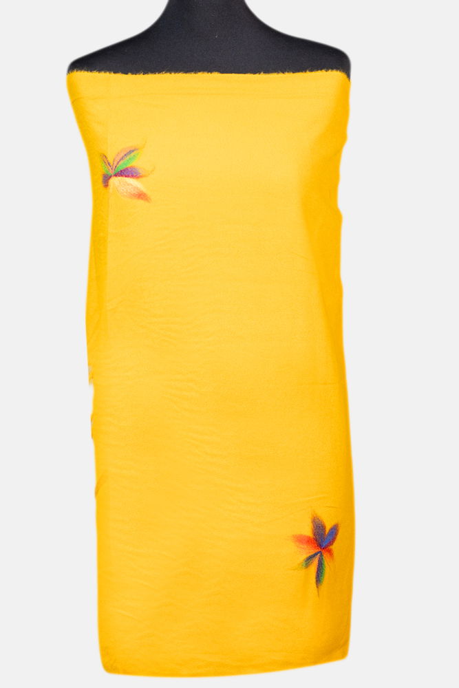 Esarfa cashmere dreptunghiulara galben mustar cu flori multicolore