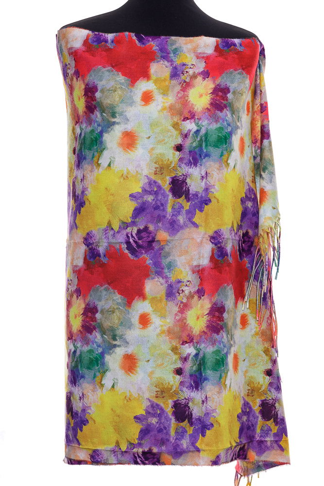 Esarfa casmir cu flori multicolore
