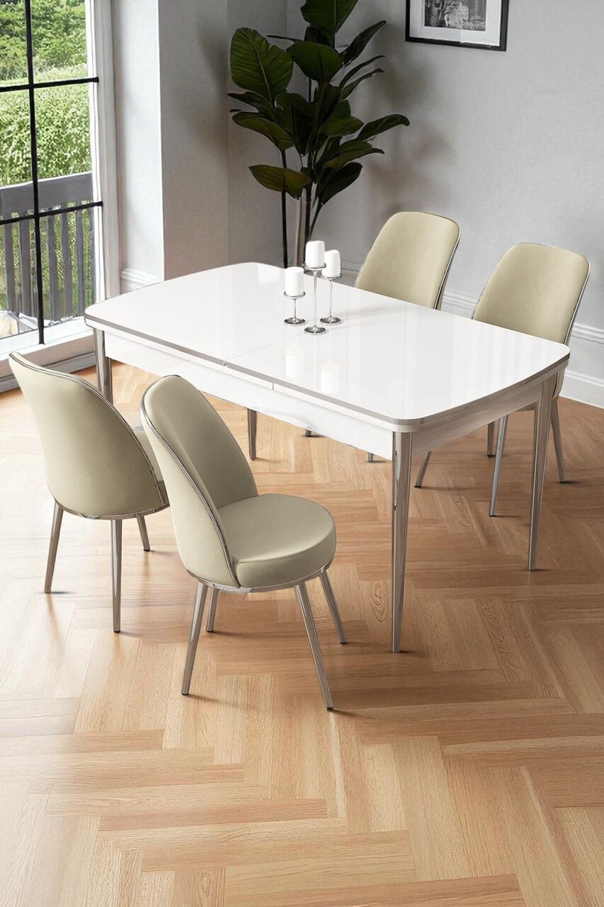 Set masa extensibila si scaune, Hanah Home, Nira, Alb / Crom / Crem