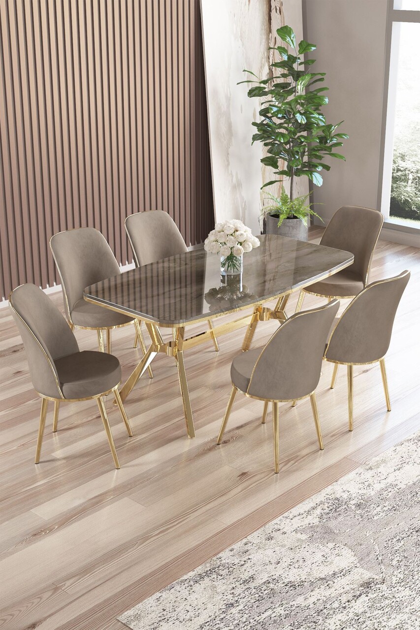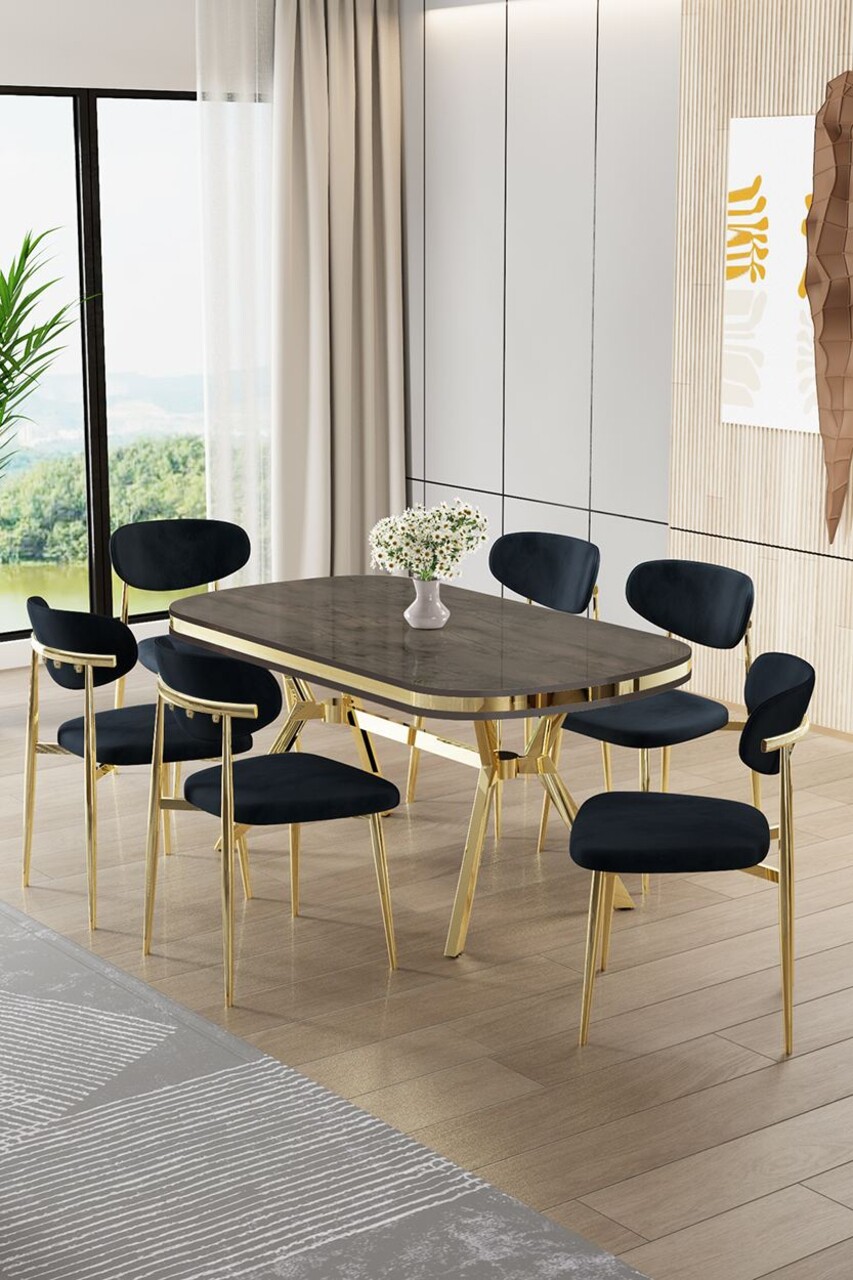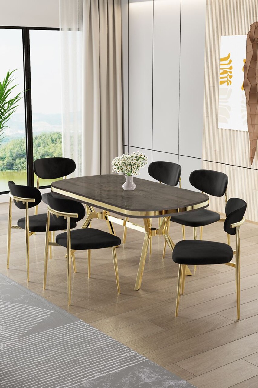Set masă și scaune (7 piese), Hanah Home, Olya, Antracit / Auriu / Cappuccino