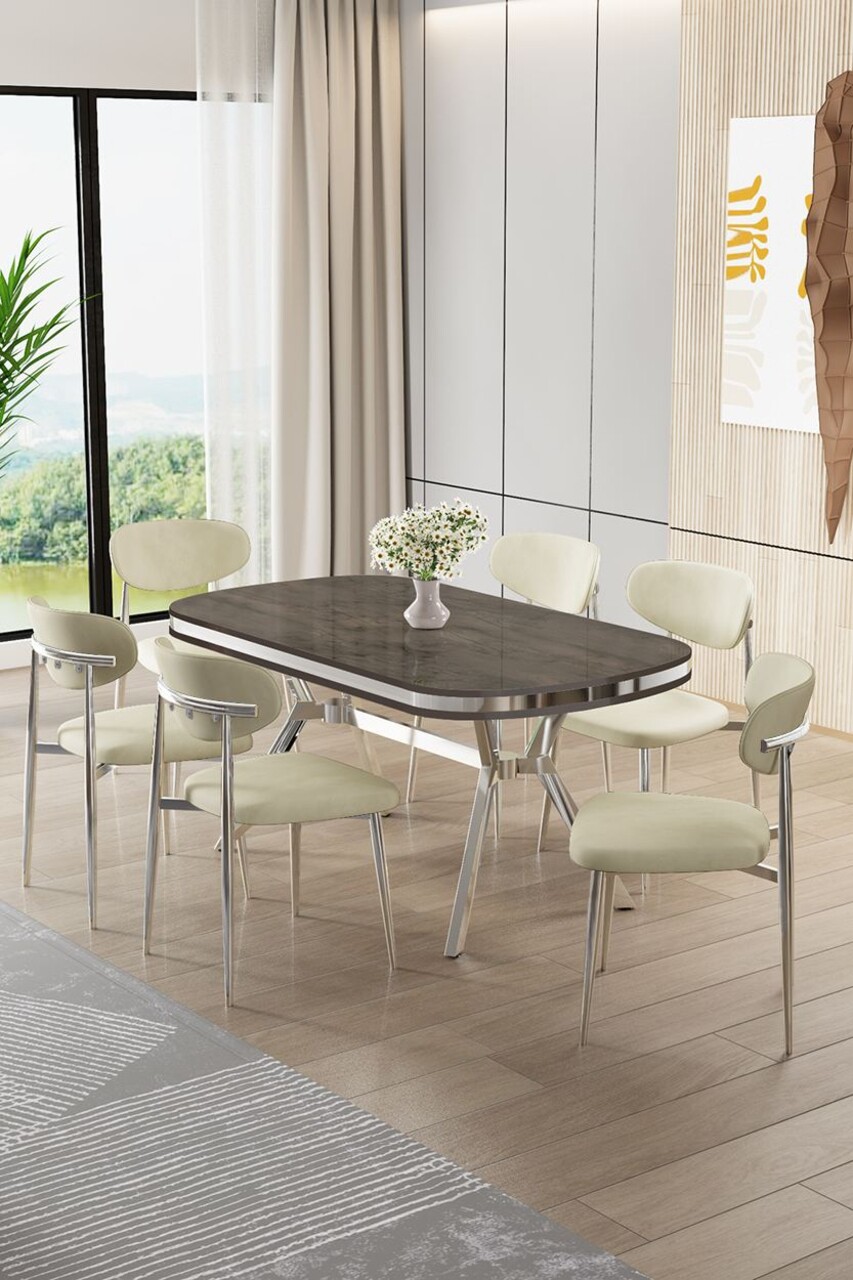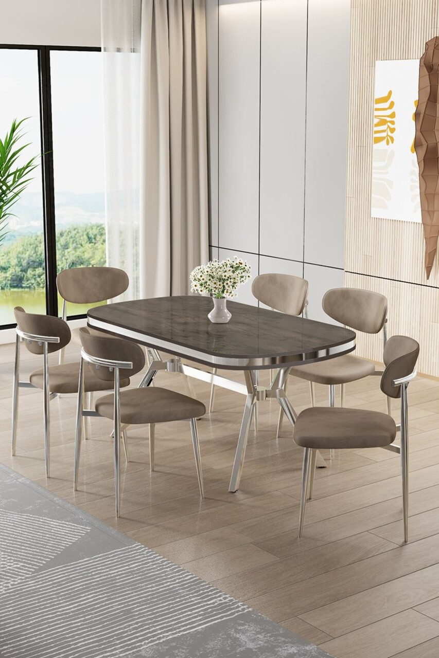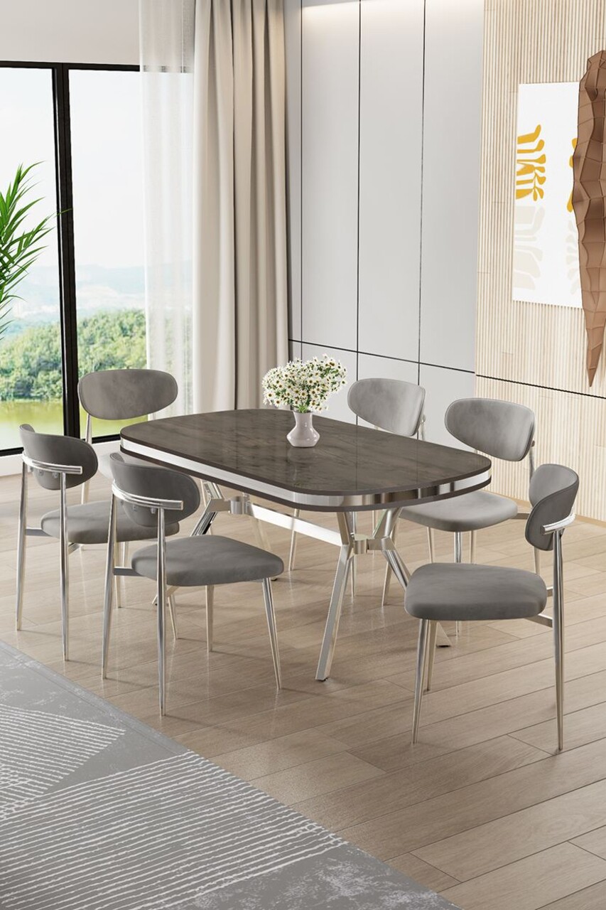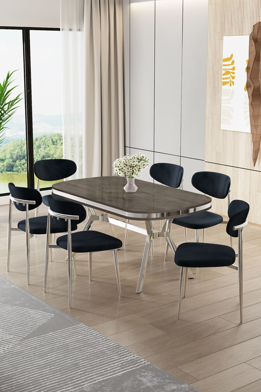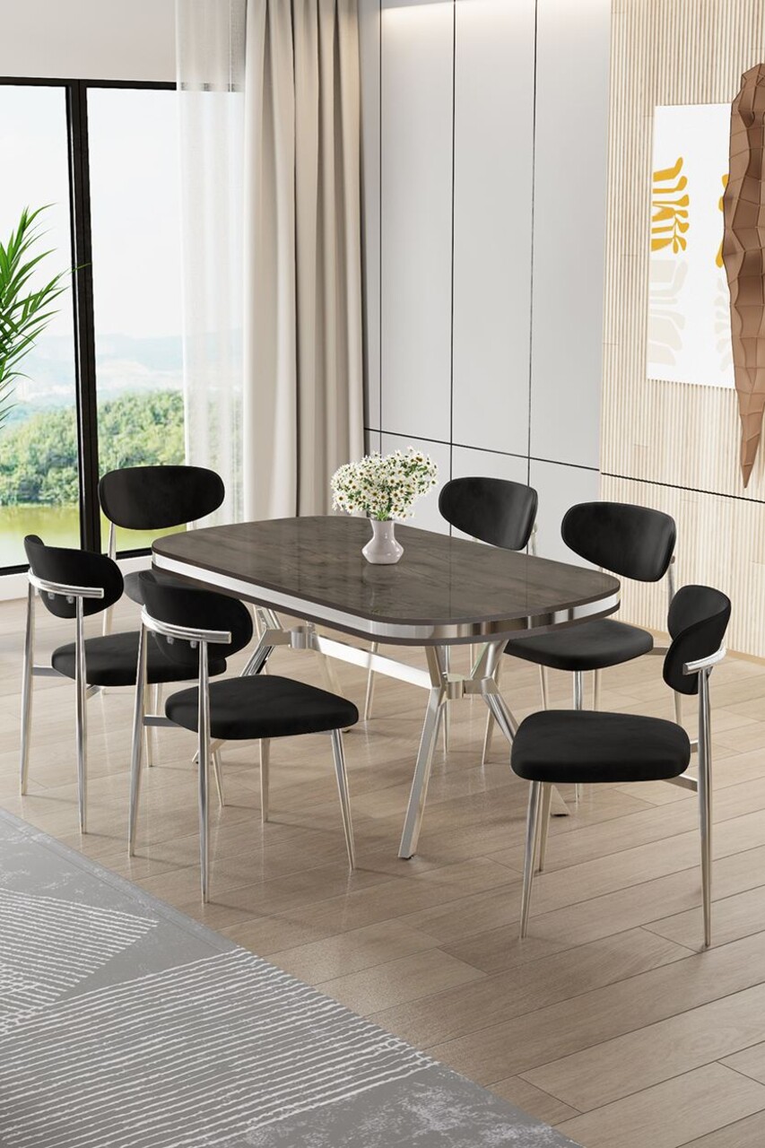 Set masă și scaune (7 piese), Hanah Home, Olya, Antracit / Crom / Cappuccino