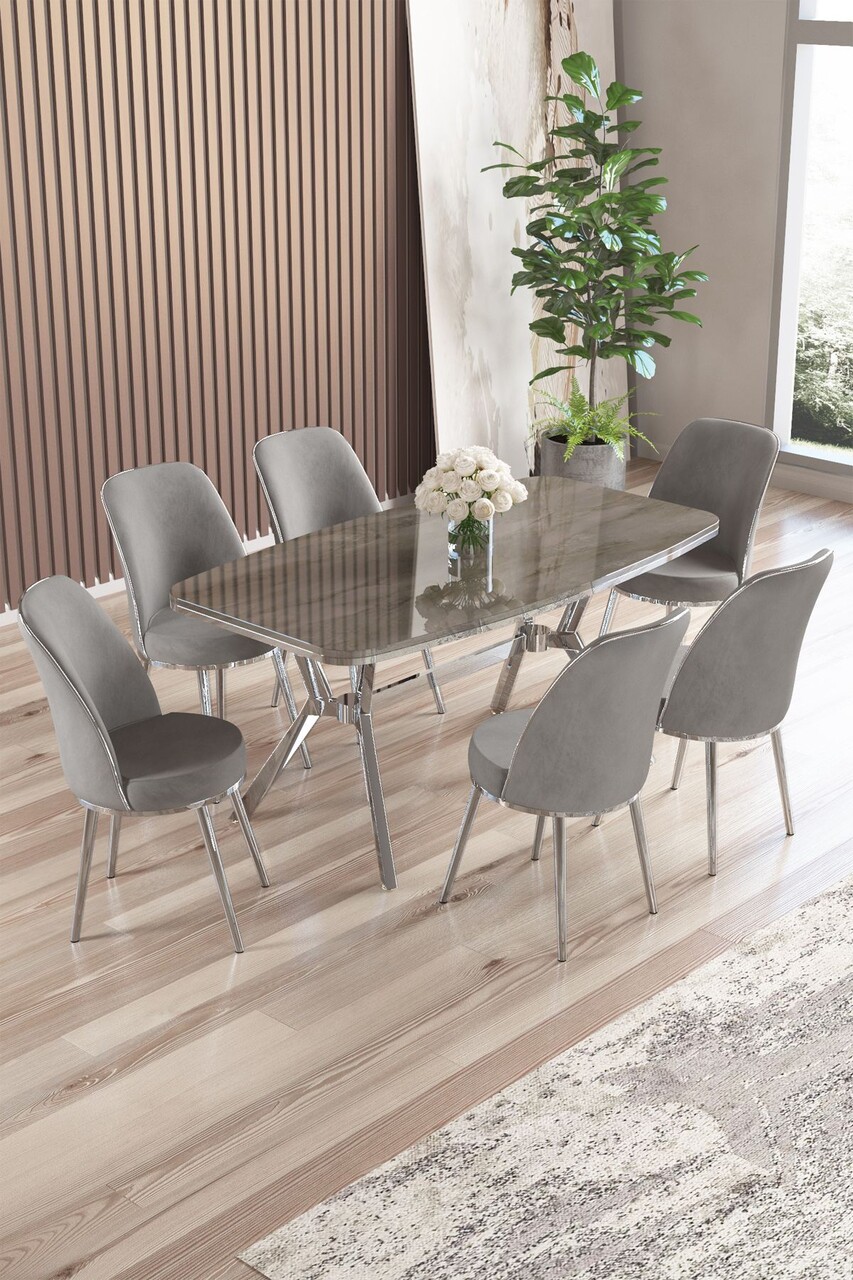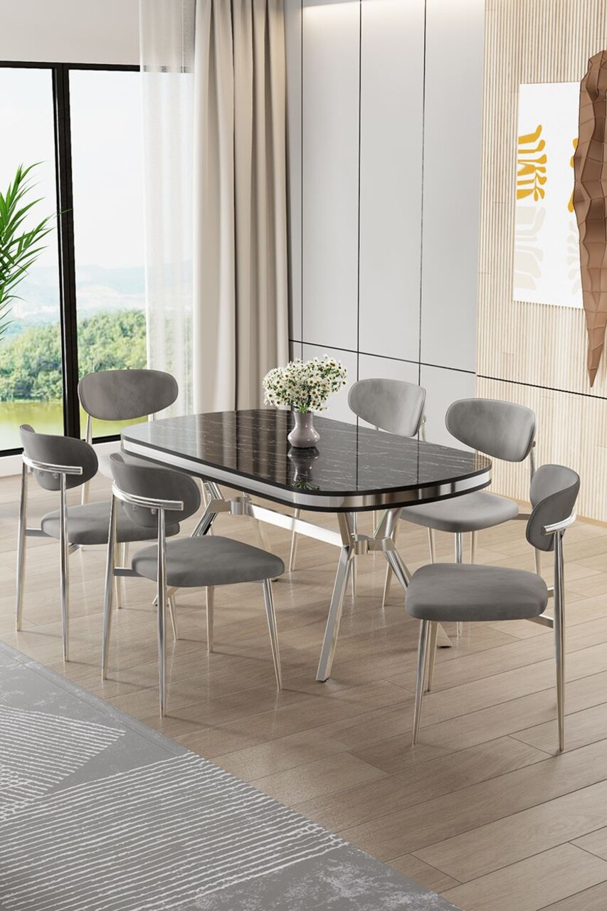 Set masă și scaune (7 piese), Hanah Home, Olya, Antracit / Crom / Gri