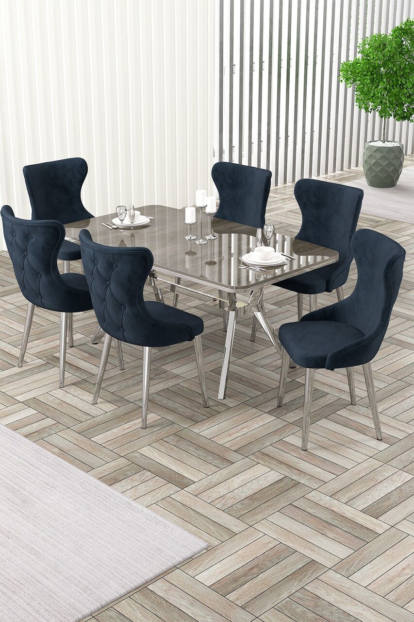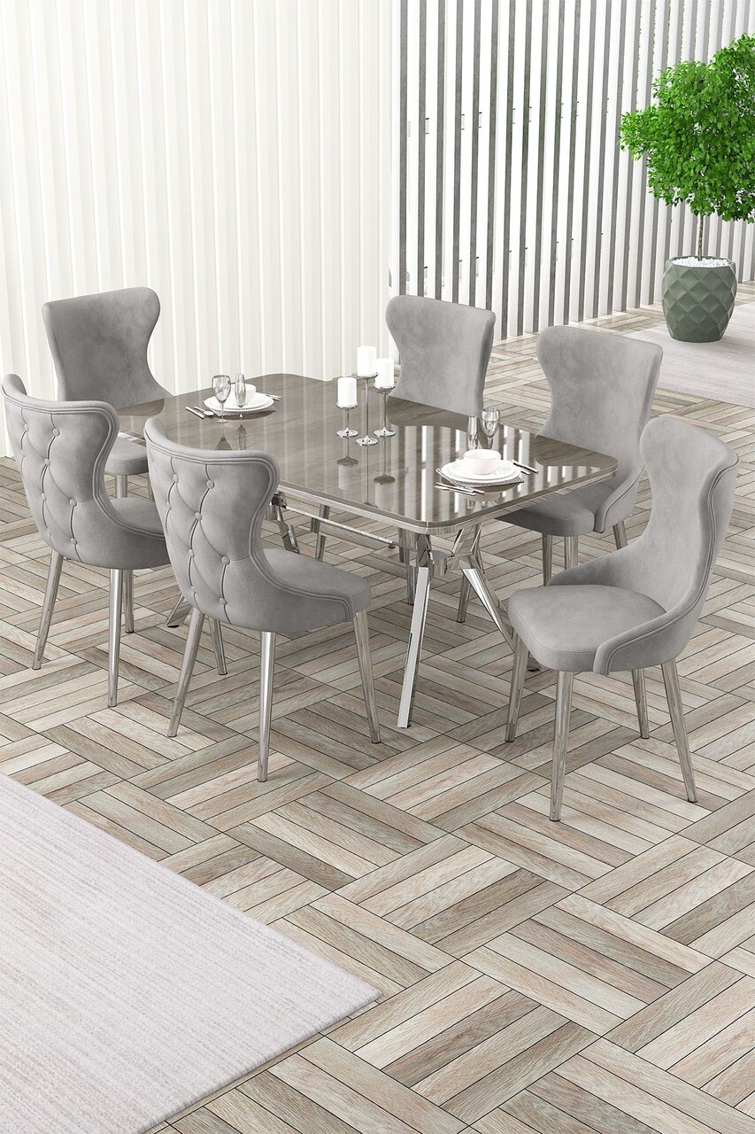 Set masa extensibila si scaune, Hanah Home, Esla, Antracit / Crom / Gri