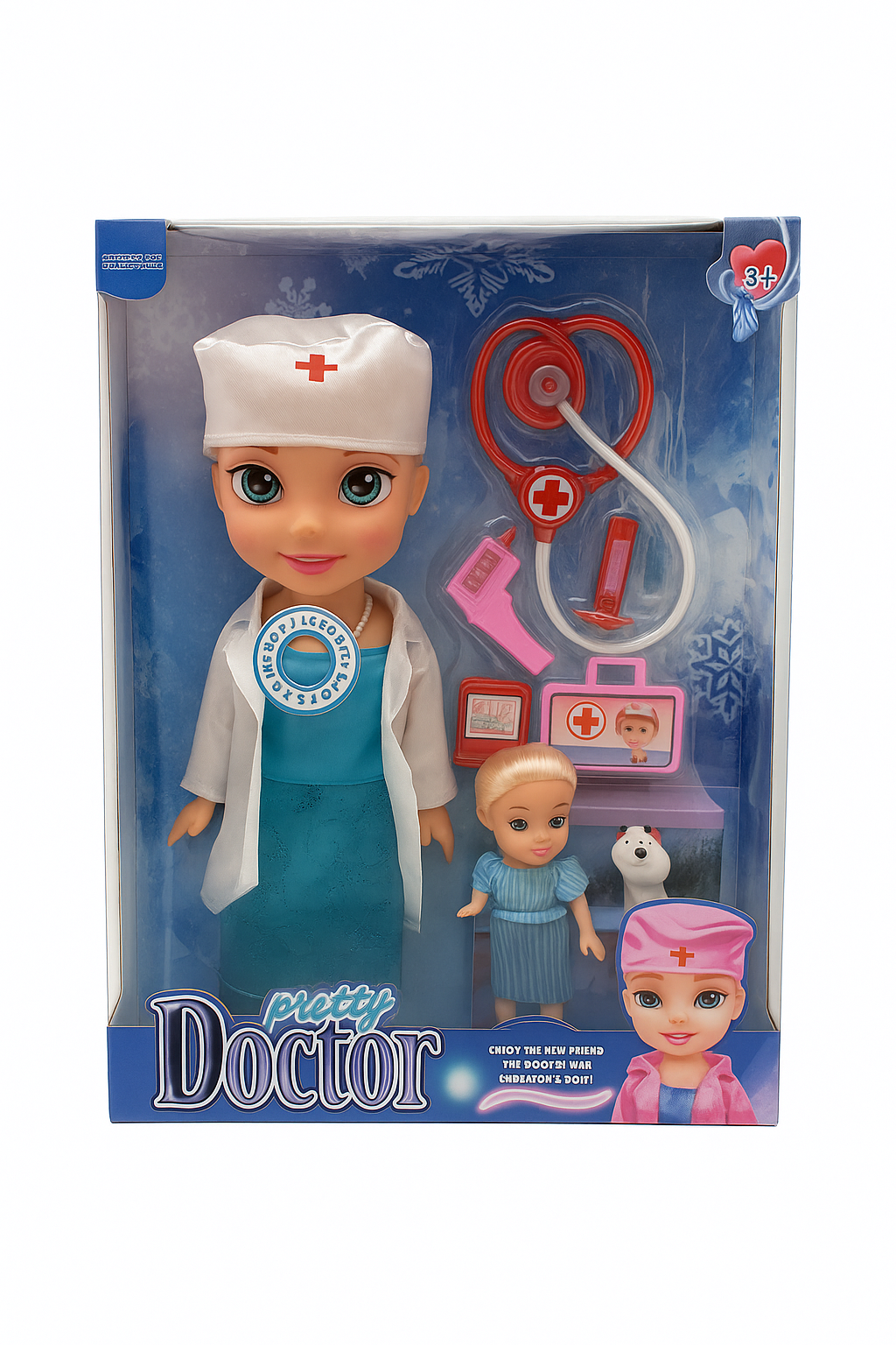 Set Papusa Pretty Doctor cu accesorii medicale, bebelus si stetoscop,37x25.5cm, jucarie fete 3+ ani