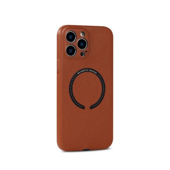 Husa Magsafe, Leather look, Compatibila cu iPhone 13 Pro, Ultra Soft, Incarcare wireless, Maro Engros