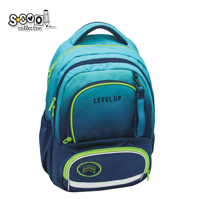 Ghiozdan ergonomic cu motiv LEVEL UP, 2 compartimente, buzunar interior, fermoar, poliester, 42x31x16 cm