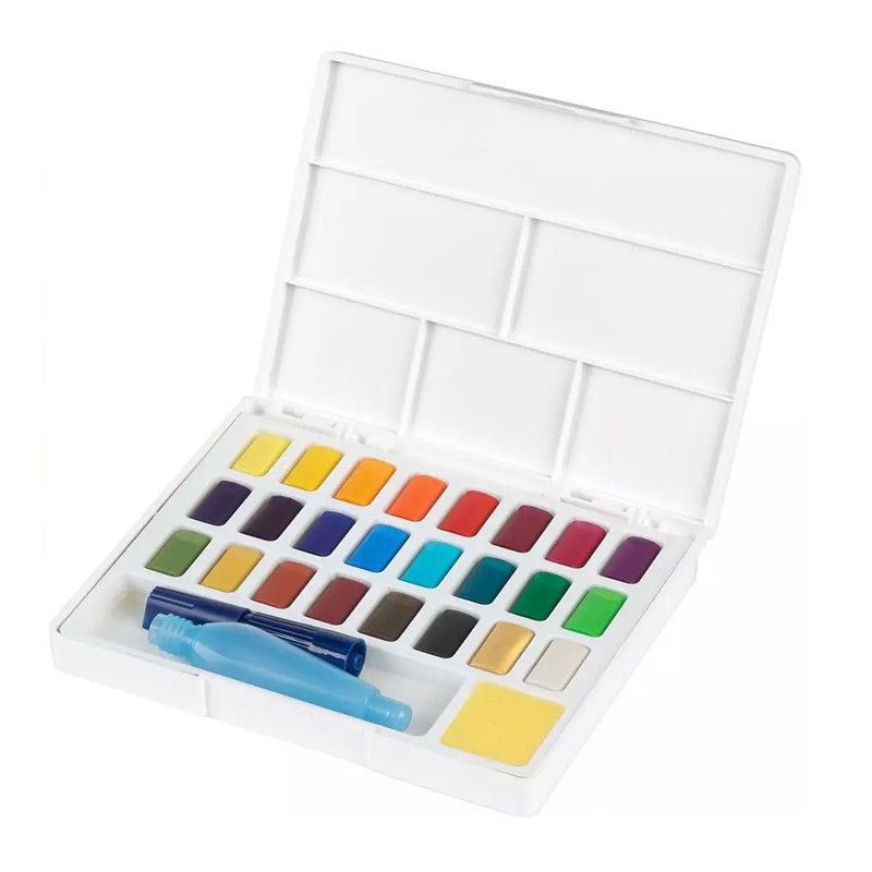 Acuarele 24 culori, pensula rezervor apa, pictura aer liber
