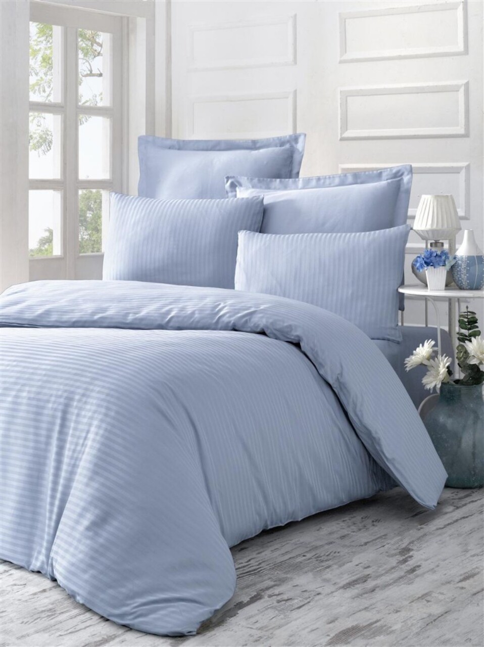Lenjerie de pat dubla Super King (FR), 3 piese, Lessentiel Maison, Line, Albastru