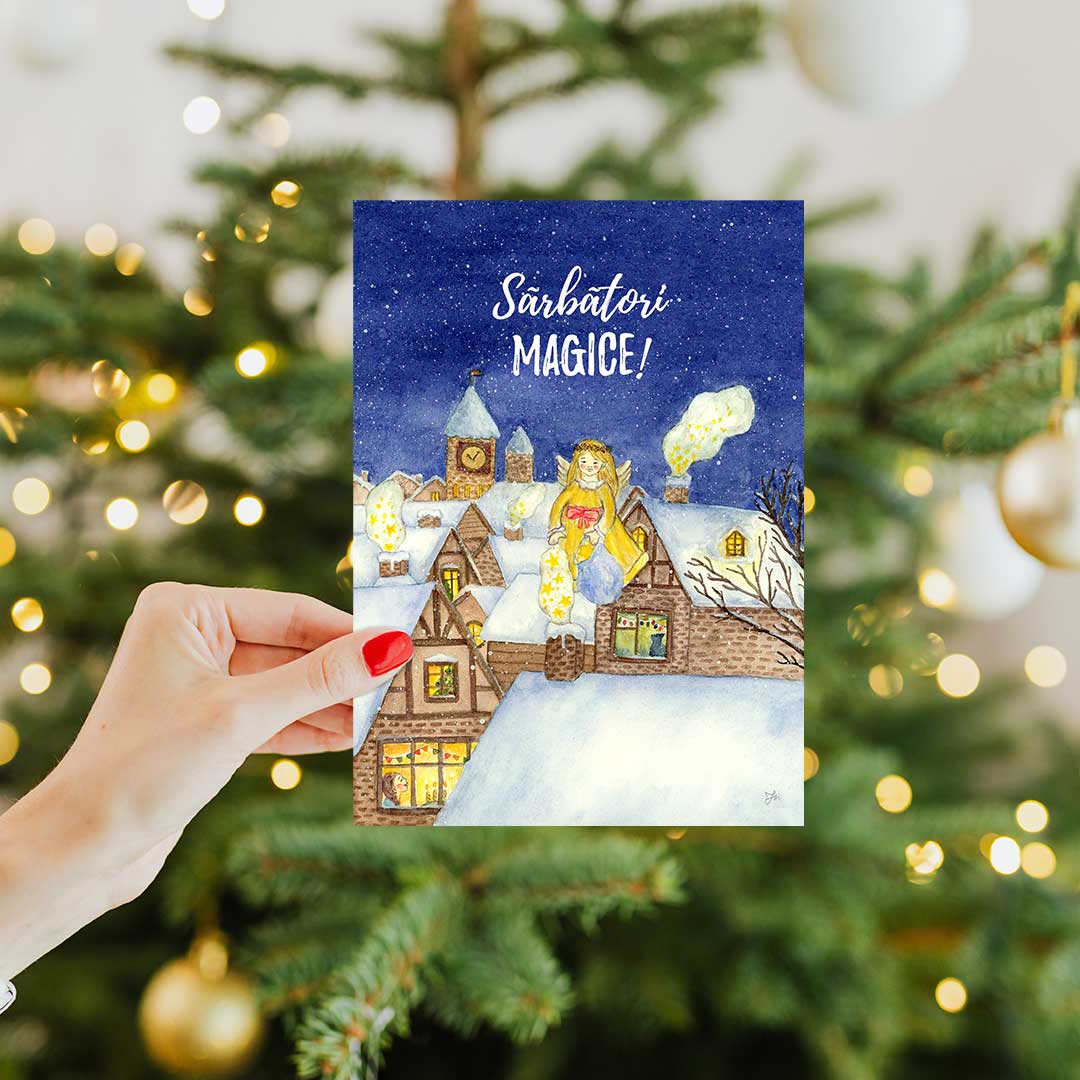 Album foto A5 personalizat, coperti din lemn, Maro, Piksel, GuestBook, Caiet amintiri pentru copii, Zana pe Luna