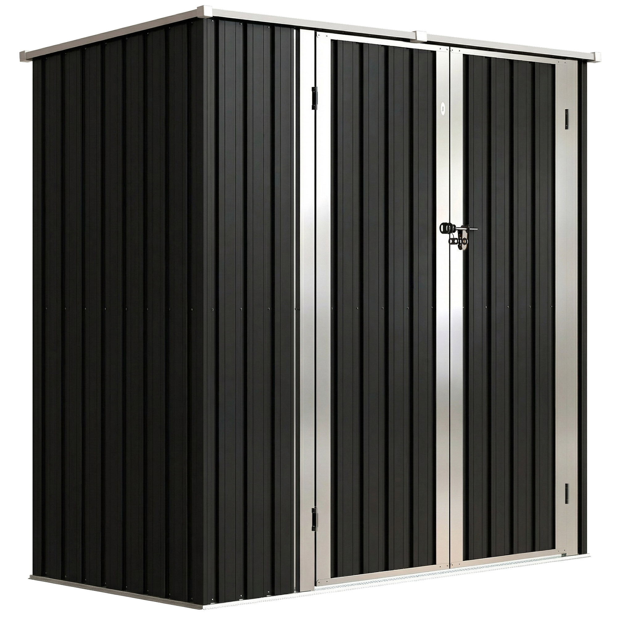 Outsunny Șopron Metalic Exterior pentru Grădină 1,37 m² 163x89x163 cm cu Acoperiș Înclinat, Uși cu Bolt și Mănuși, Gri | Aosom Romania