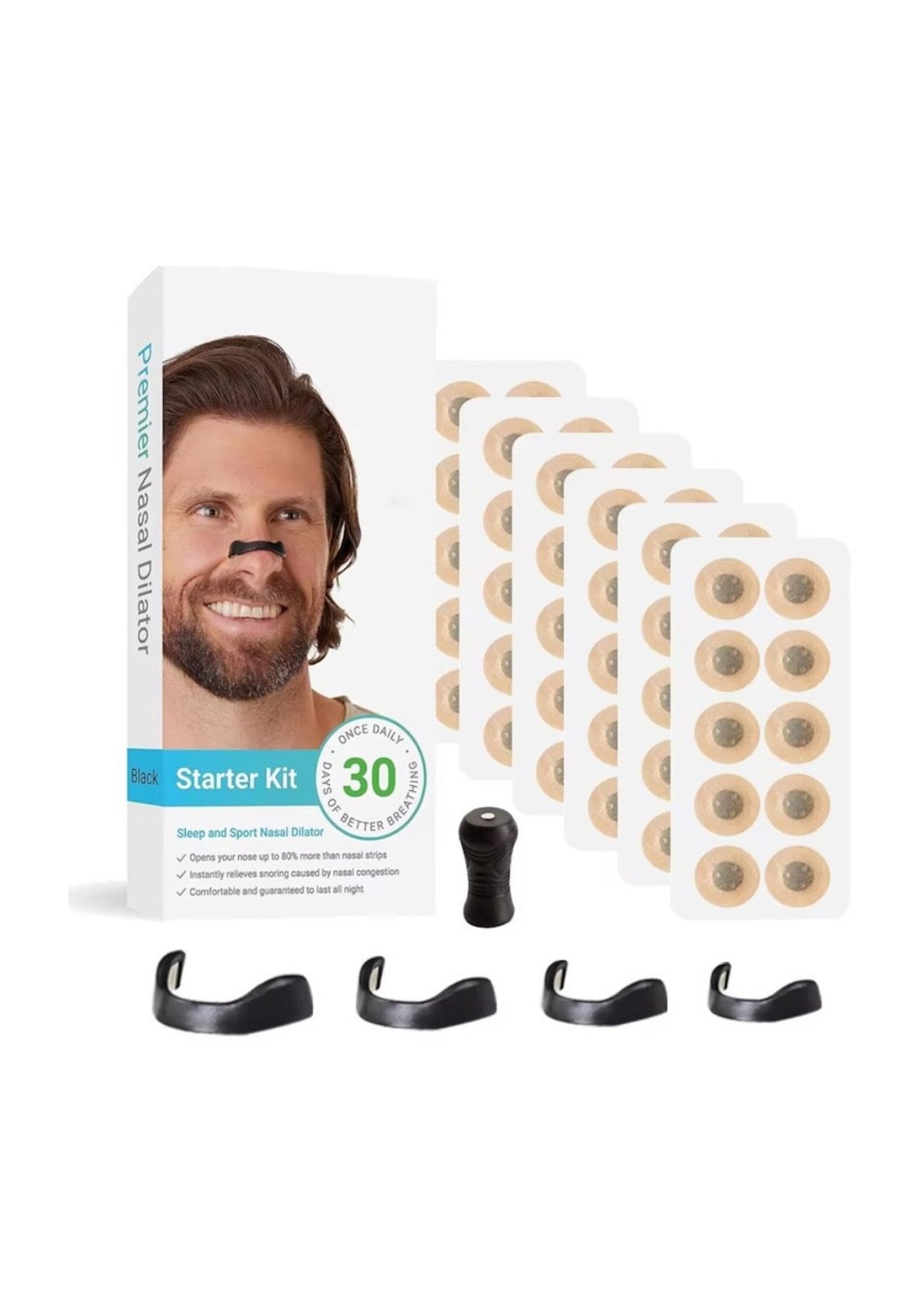 Dilatator nazal magnetic, antisforait si sport creste aportul de oxigen, 4 benzi magnetice de marimi diferite, aplicator, 15 plasturi magnetici, Negru Angro engros