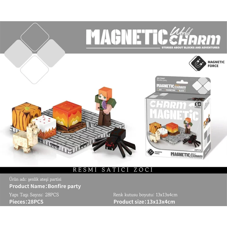 Set Magnetic Petrecere la Foc de Tabara – 28 Piese cu Figurine si Elemente Pixelate