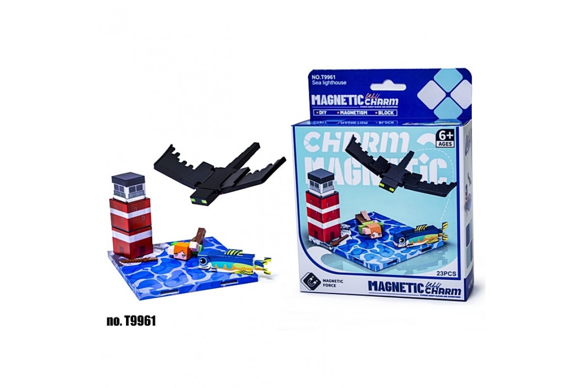 Set Magnetic Farul de pe Mare – 23 Piese cu Figurina, Pesti si Dragon Zburator