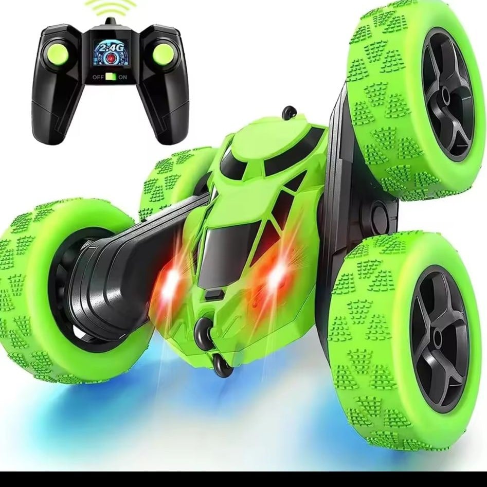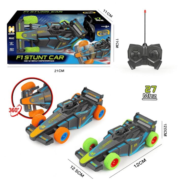 Masina Verde F1 Stunt Car cu Telecomanda 27 MHz, Rotatie 360°, Lumini LED, 21 cm, Engros