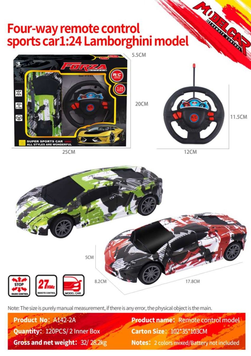Masina Drift Racing R/C 1:20 cu Telecomanda, Design Sport si Control 27MHz, Engros