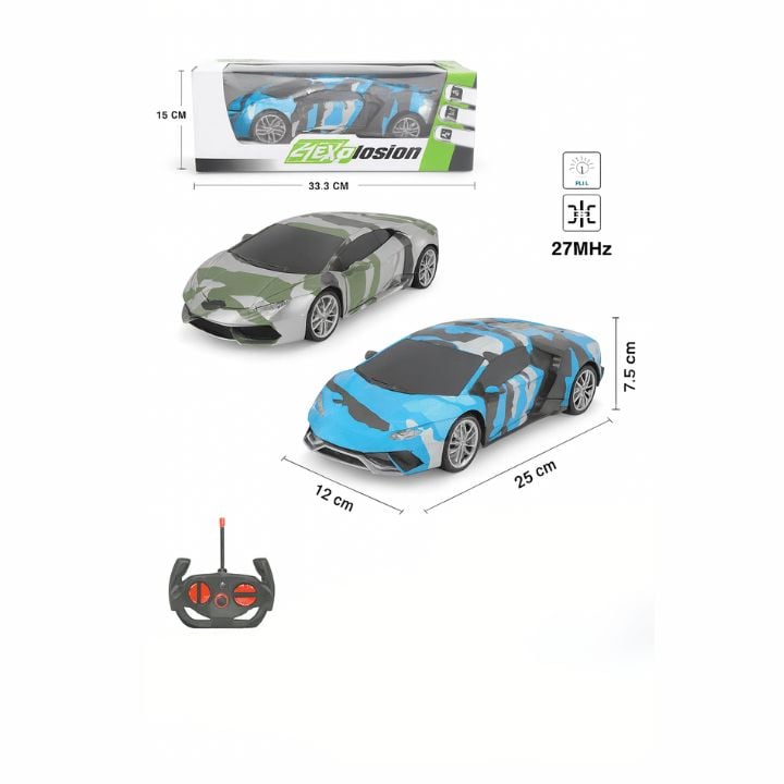 Masina Sport cu Telecomanda 1:16, Model Camo Verde Albastru, Lumini LED si Incarcare USB, Engros