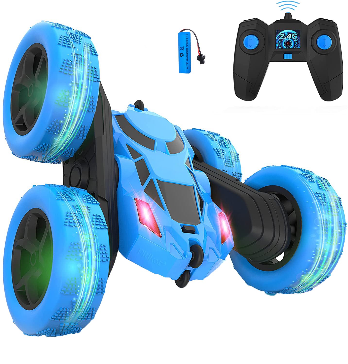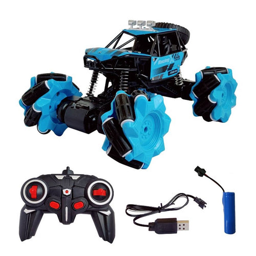 Masina cu telecomanda RC Engros pentru copii, cascadorie, de drift cu rotire la 360 grade si rasturnari de 180 grade, rapida, 4WD, Rock Crawler, off-road, controlate prin radio, Albastru, Pitikot®