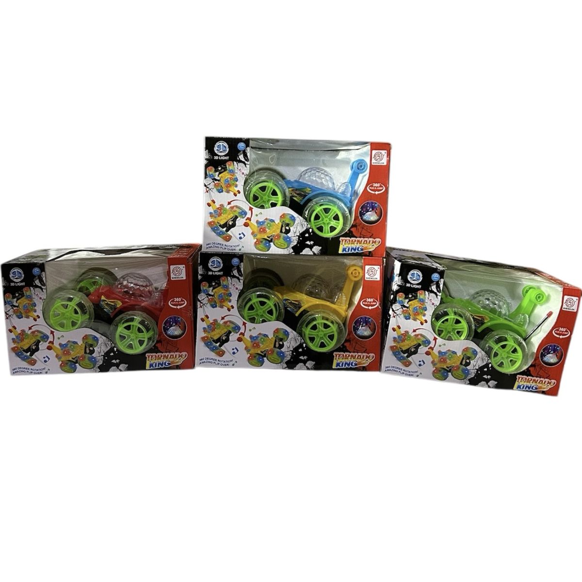 Masina Tornado King 3D cu telecomanda-Engros rosie, rotatie 360 grade, lumini, sunete si baterii telecomanda incluse