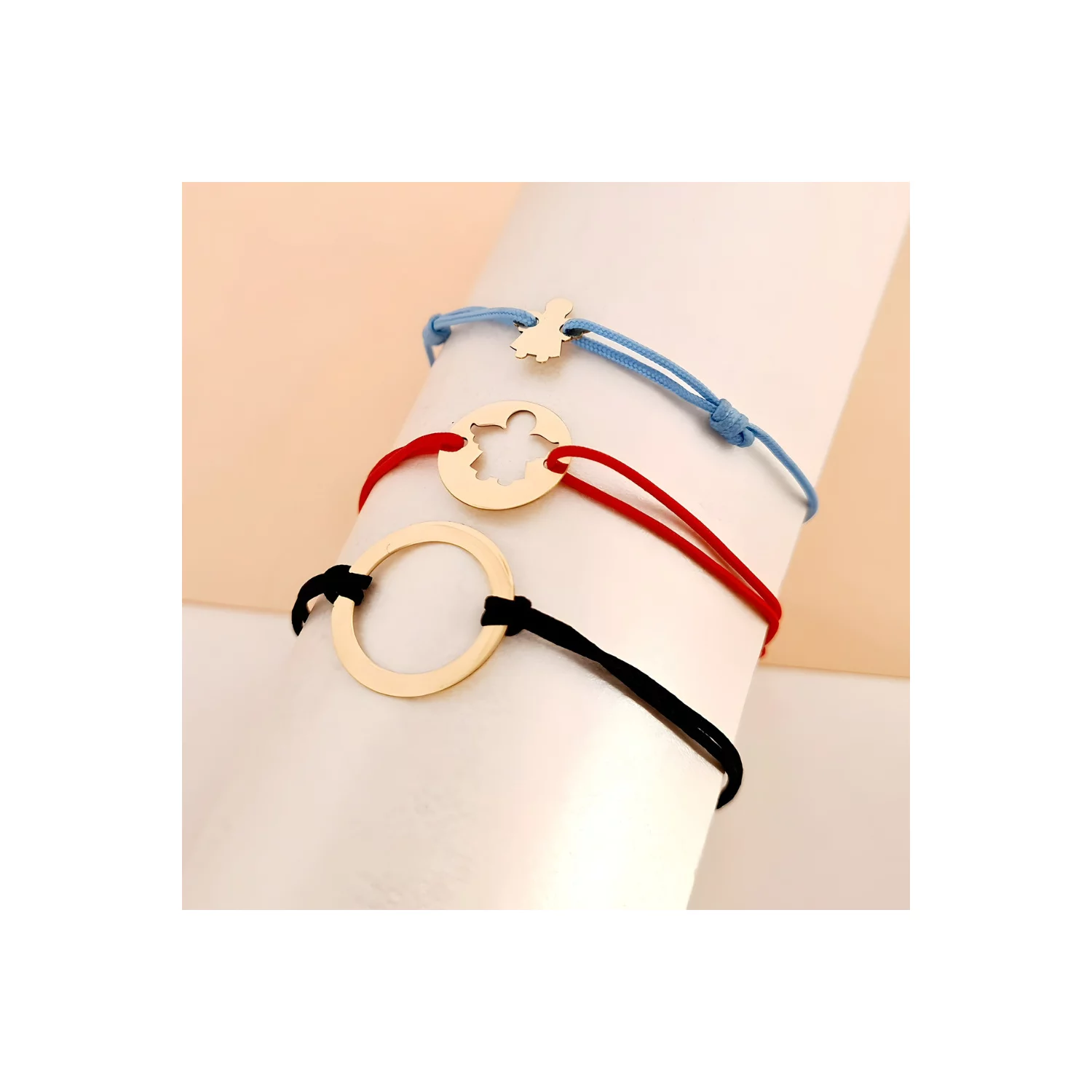 Bratara personalizata - Siluete mama si fiu - Banut de 12 mm - Aur Galben 14K - snur reglabil