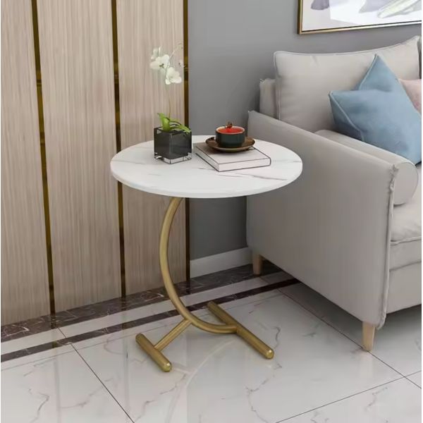 Masa laterala rotunda din otel inoxidabil auriu stil nordic model marmura