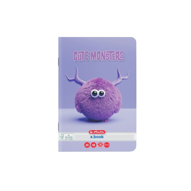 Caiet A5, 48 File, 70 g / mp, Hartie FSC MIX, Matematica, Colturi Rotunjite, Motiv Cute Monster