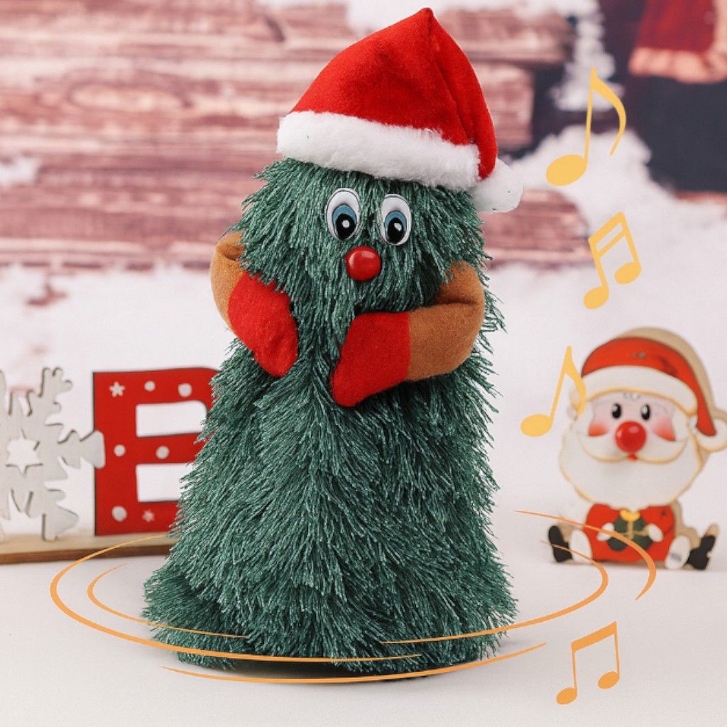 Figurina de Crăciun 25x11cm, Brad Dansator cu Muzică și Mișcare Rotativă, Model Interactiv cu Pălărie Moș Crăciun Engros
