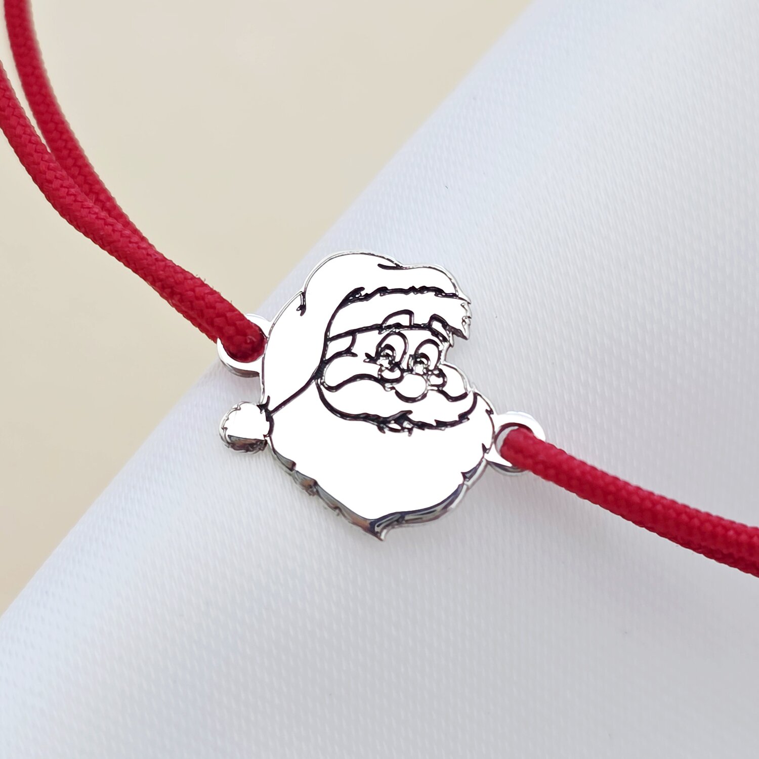 Bratara Craciun - Mos Craciun cu plete dalbe - Argint 925, snur reglabil diverse culori
