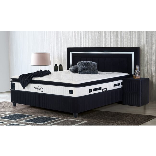 Noptieră Calipso cu 2 sertare, tapițată cu stofă catifelată, 42x45x60 cm, negru