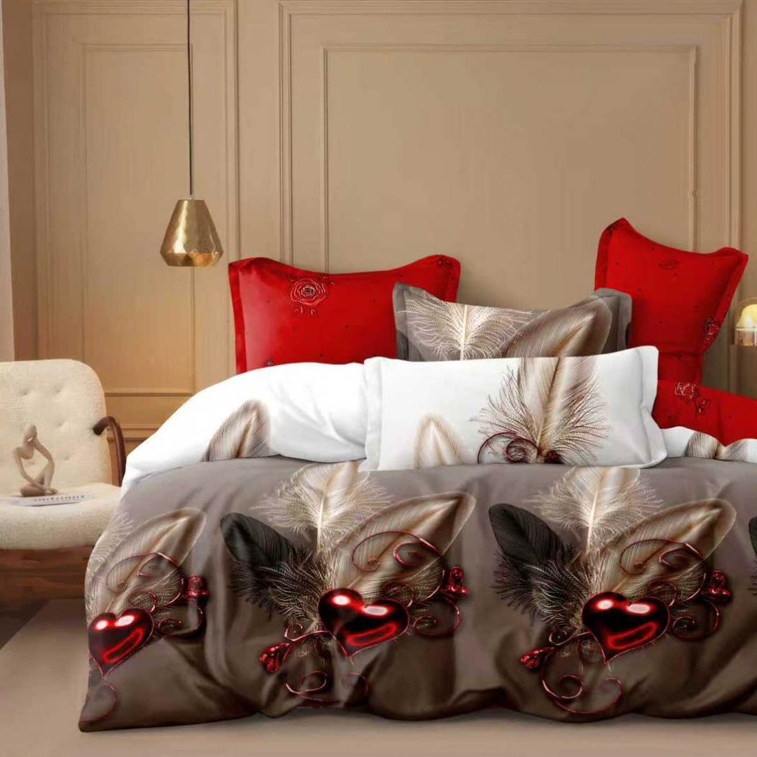 Lenjerie pat dublu cu ELASTIC, Finet, 6 piese, Alb, Bej, Rosu, inimioare