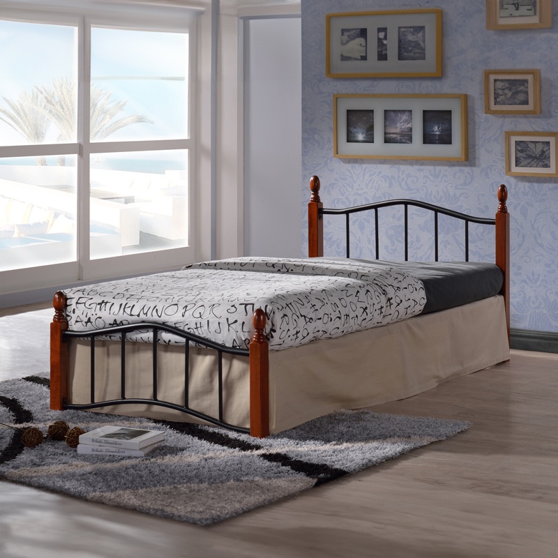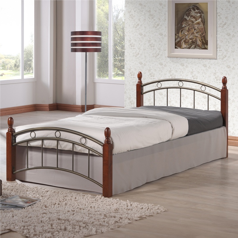 Pat de o persoană Faryn, negru/nuc, 90x190 cm