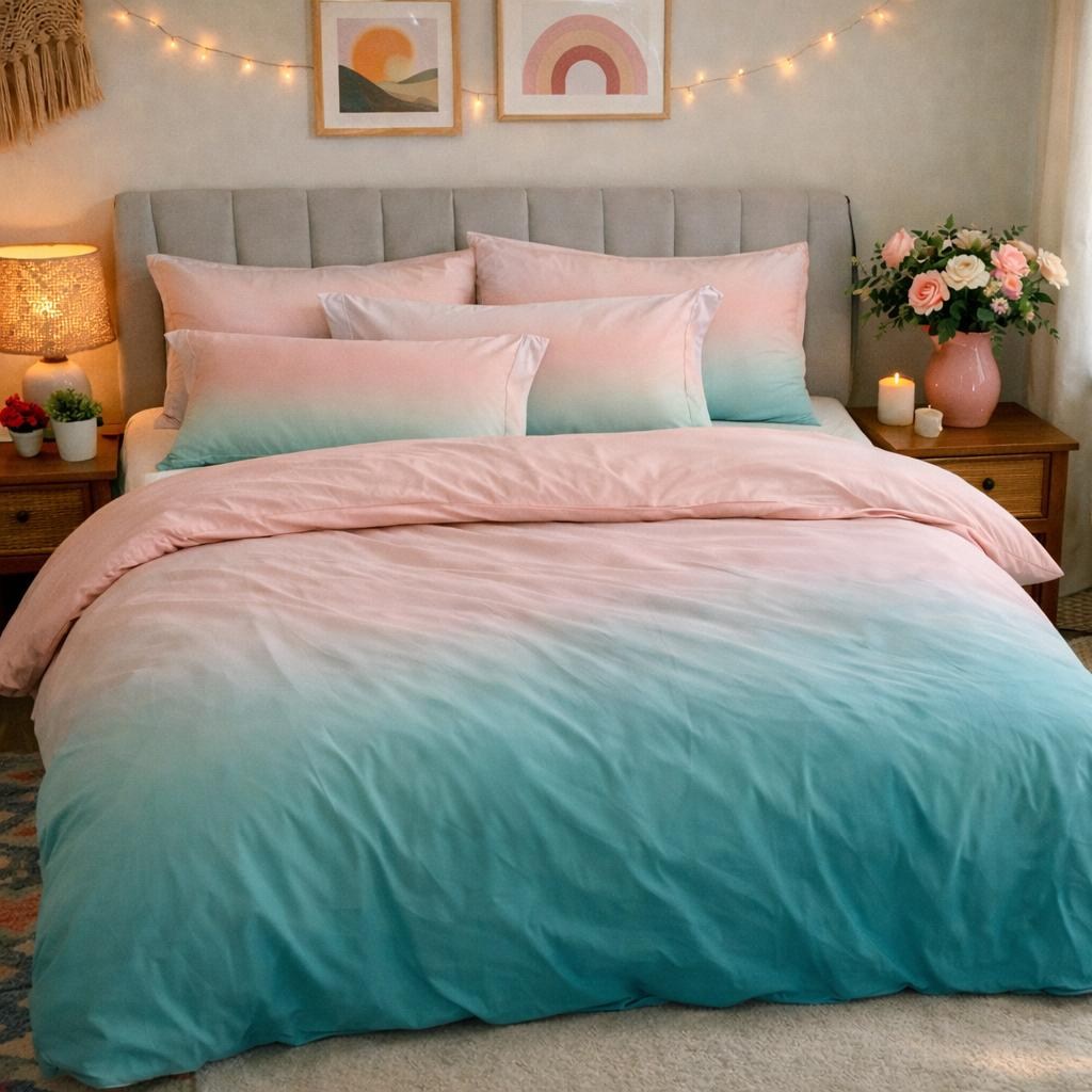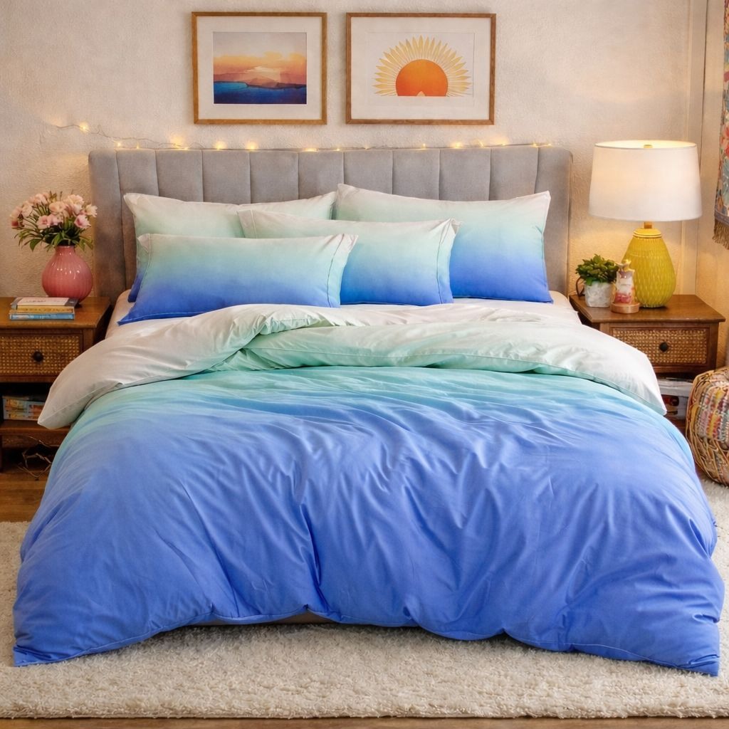Lenjerie pat dublu, Finet, 6 piese, Bleu, degrade