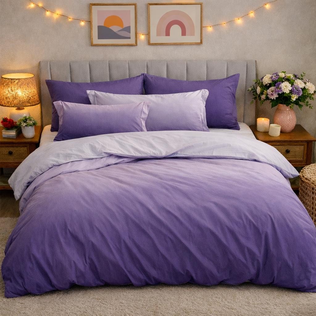 Lenjerie pat dublu, Finet, 6 piese, Lila, degrade