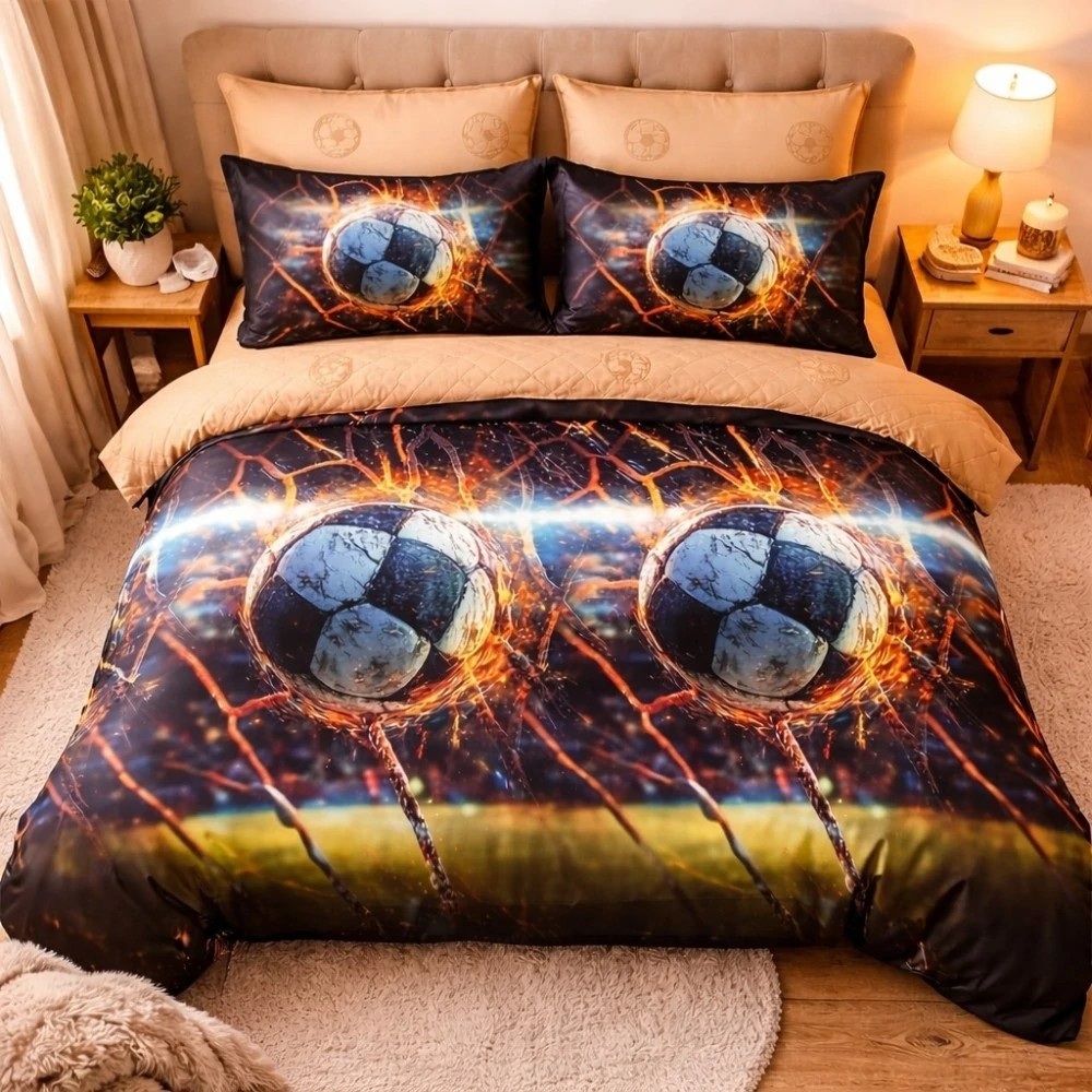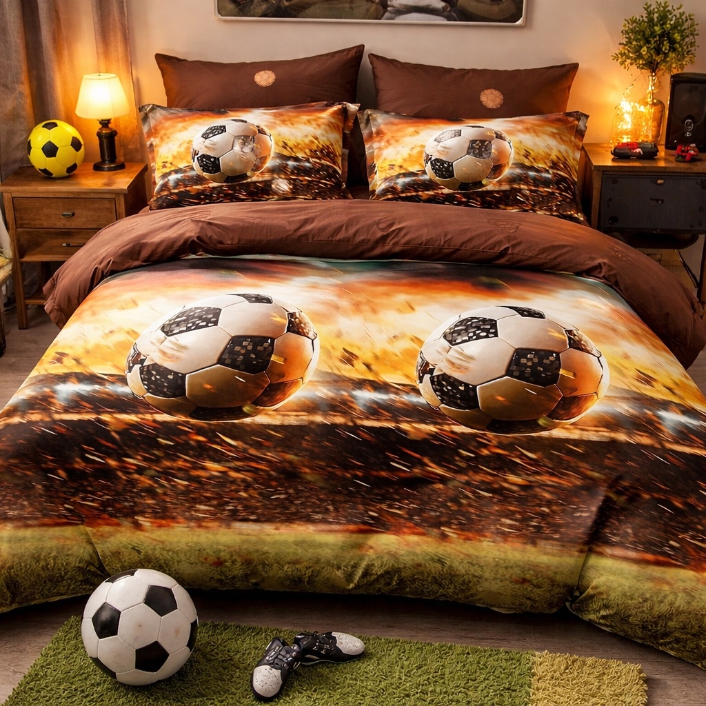 Lenjerie pat dublu, Finet, 6 piese, Maro, mingii de fotbal