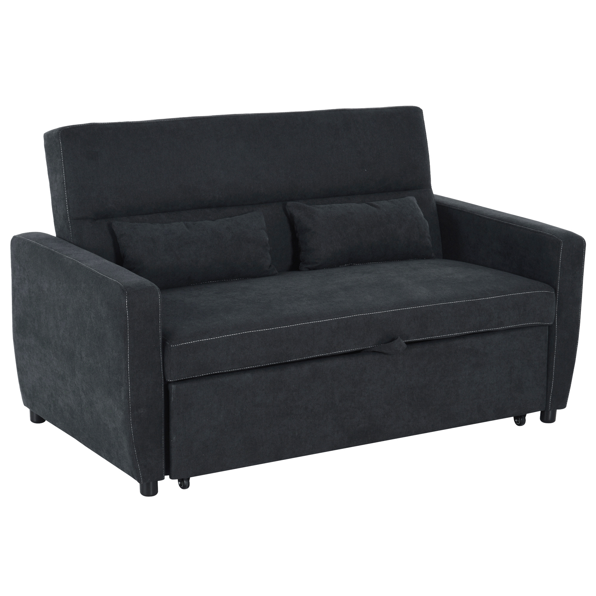 HOMCOM Canapea‑Pat 2 locuri Extensibilă Tapițată în Chenille cu Căptușeală Groasă Brațe Late 2 Perne Gri Închis | Aosom Romania