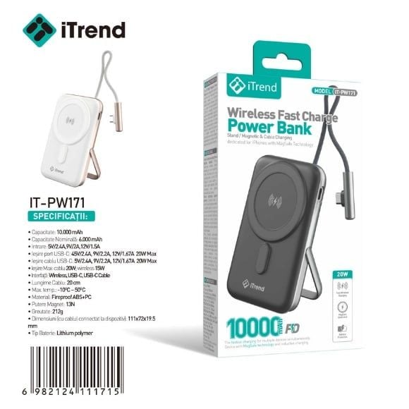 RT BATERIE EXTERNA POWER ITREND PW 171 20W INCARCARE WIRELESS 15W SUPORT