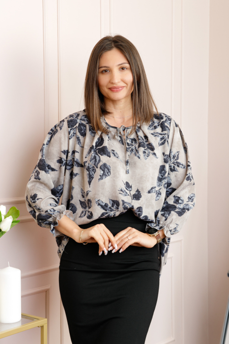 Bluza dama gri cu imprimeu floral gri antracit Quinn plus size