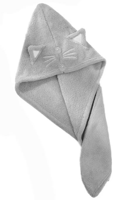 Prosop de baie pentru copii tip Turban din microfriba pentru uscarea parului model pisicuta