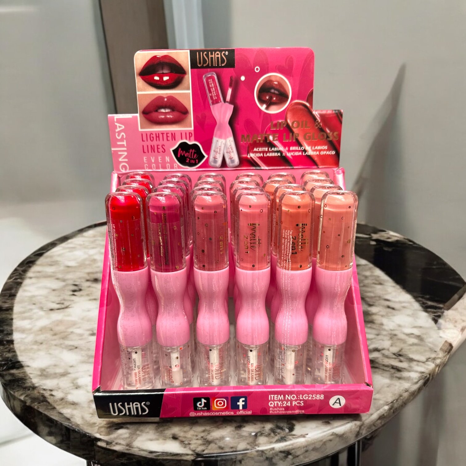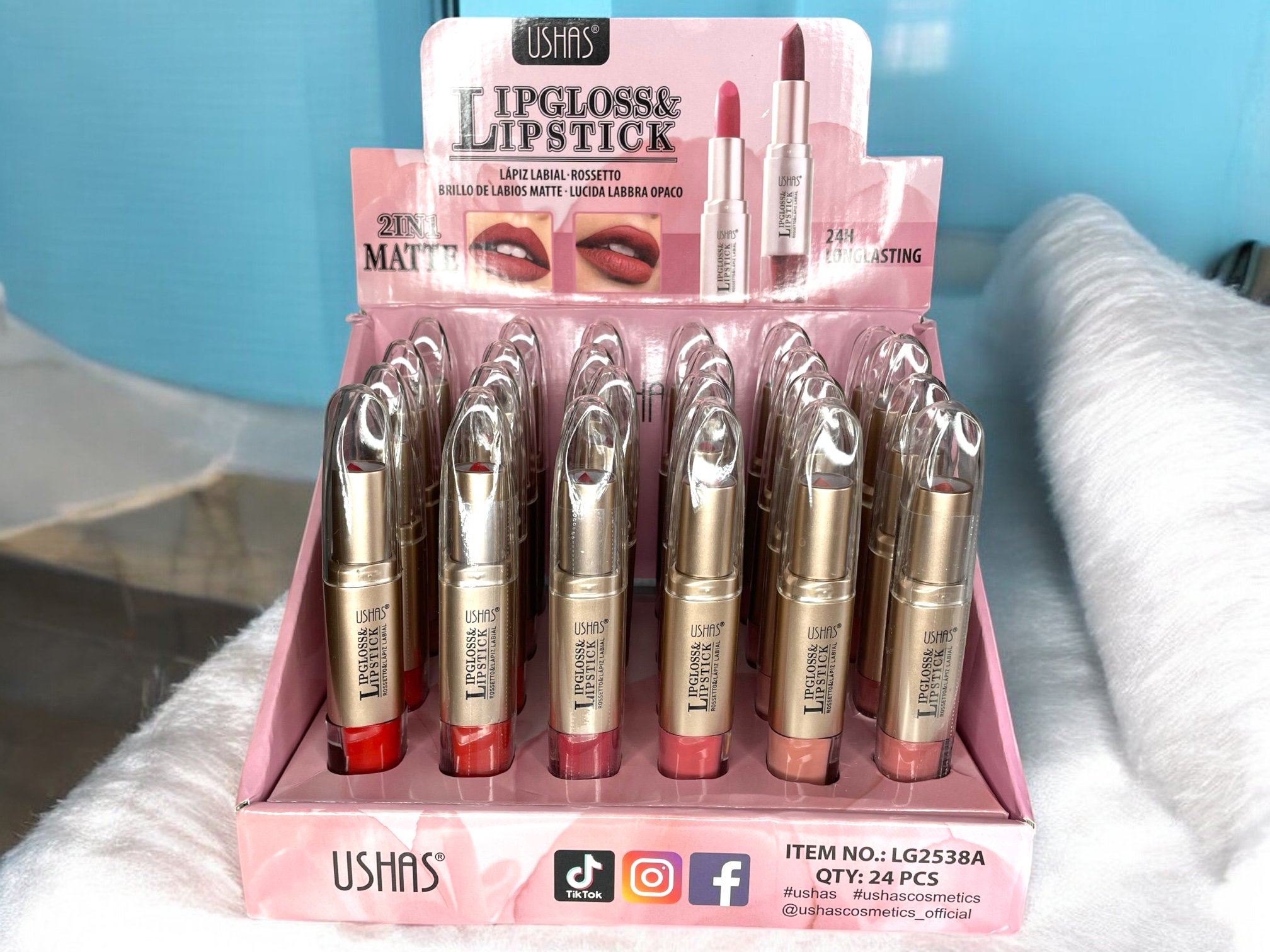 Ruj de buze+luciu de buze engross 2 capete mat USHAS solid 24/ cutie 2588A