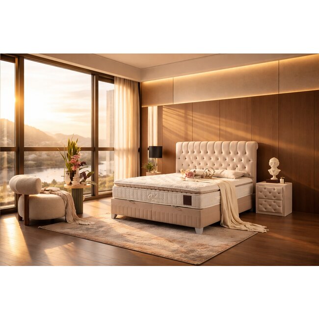 Pat matrimonial, Stockholm, Chester E, 160x200 cm, saltea tip Pocket, topper memory, Bej