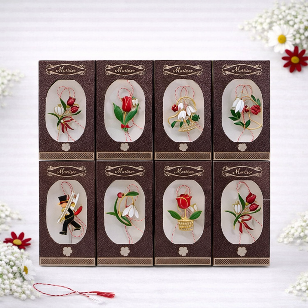 Set 24 brose martisor modele combinate, ambalaj individual, 9x7.5cm