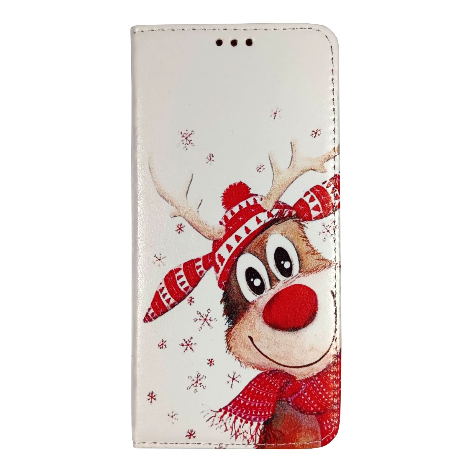 Husa Craciun Flip Carte Compatibila cu Huawei P Smart Z model model Rudolf, Portofel cu Stand, Antisoc Alb/Rosu Engros