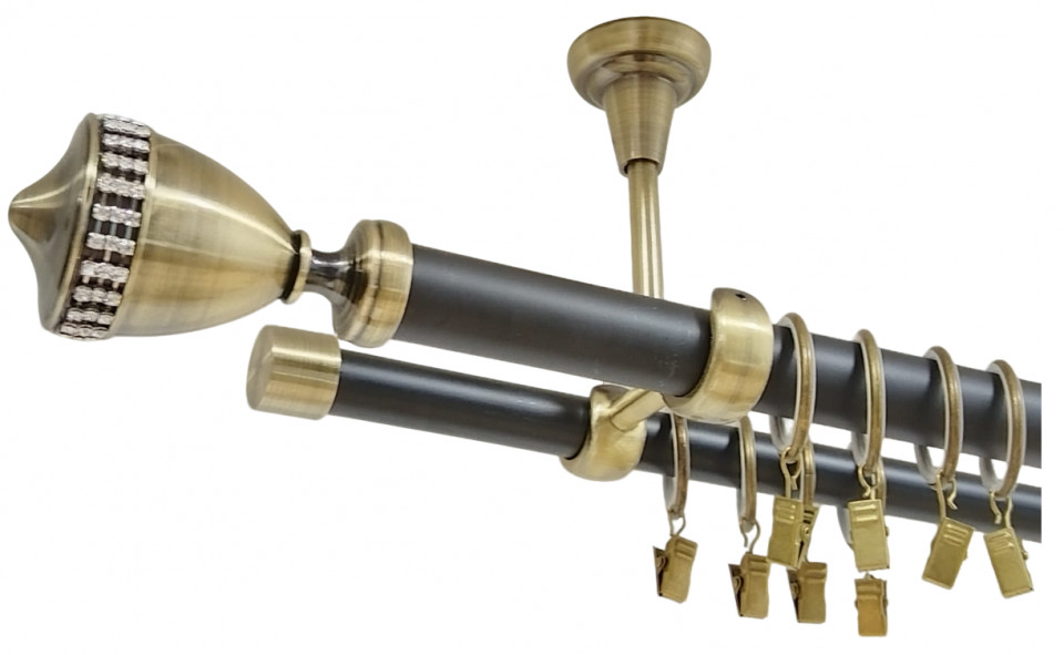 Galerie dublă VIENNA DUBLA 25/19 mm aur antic – țeavă profil cu canal, prindere tavan