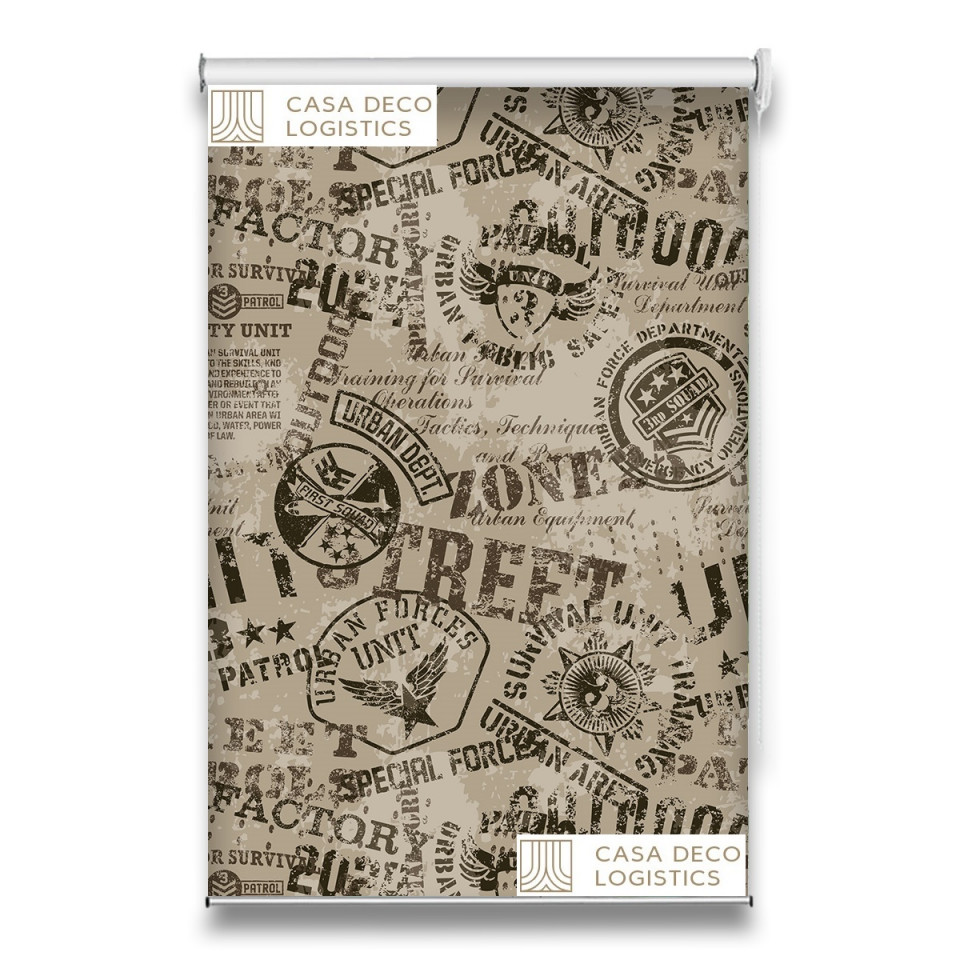 Roletă textilă Urban 4009 cu model vintage tipografie
