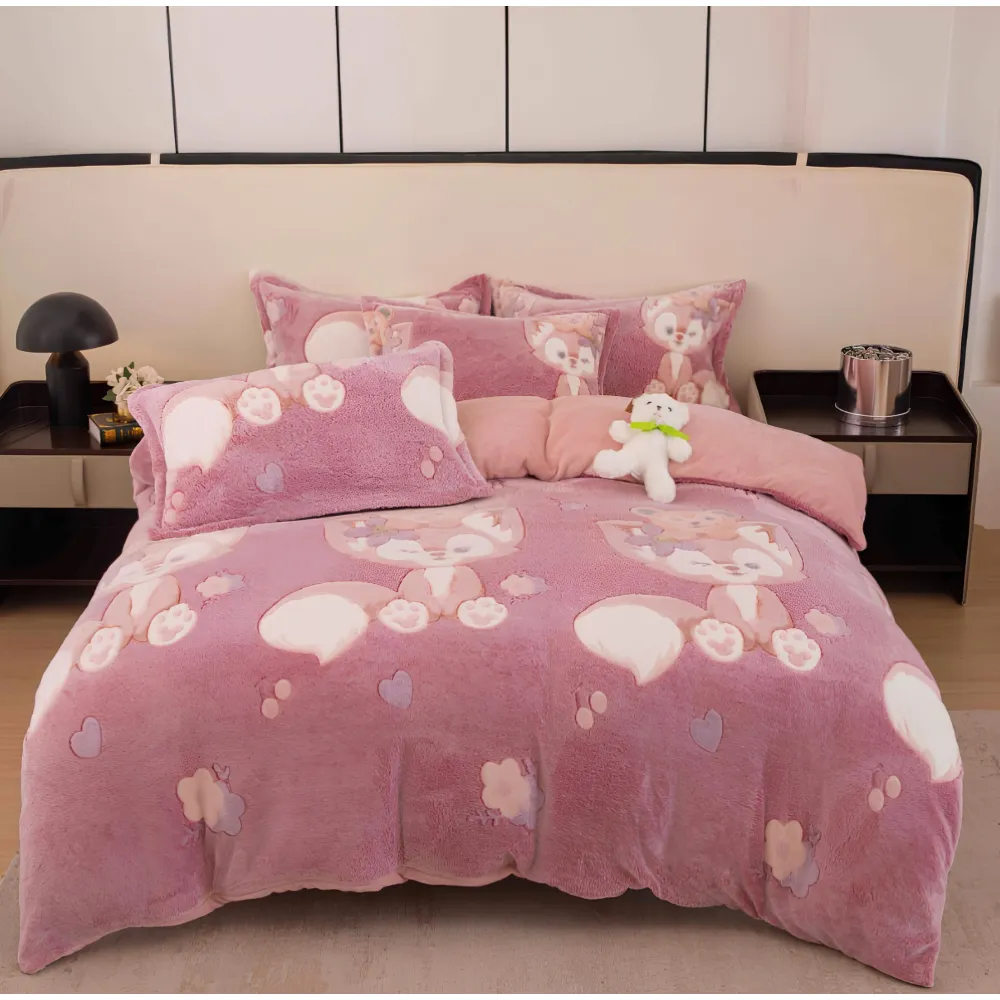 Lenjerie Cocolino 4 Piese Pentru Pat Dublu cu Elastic- JO280 Vulpe Roz