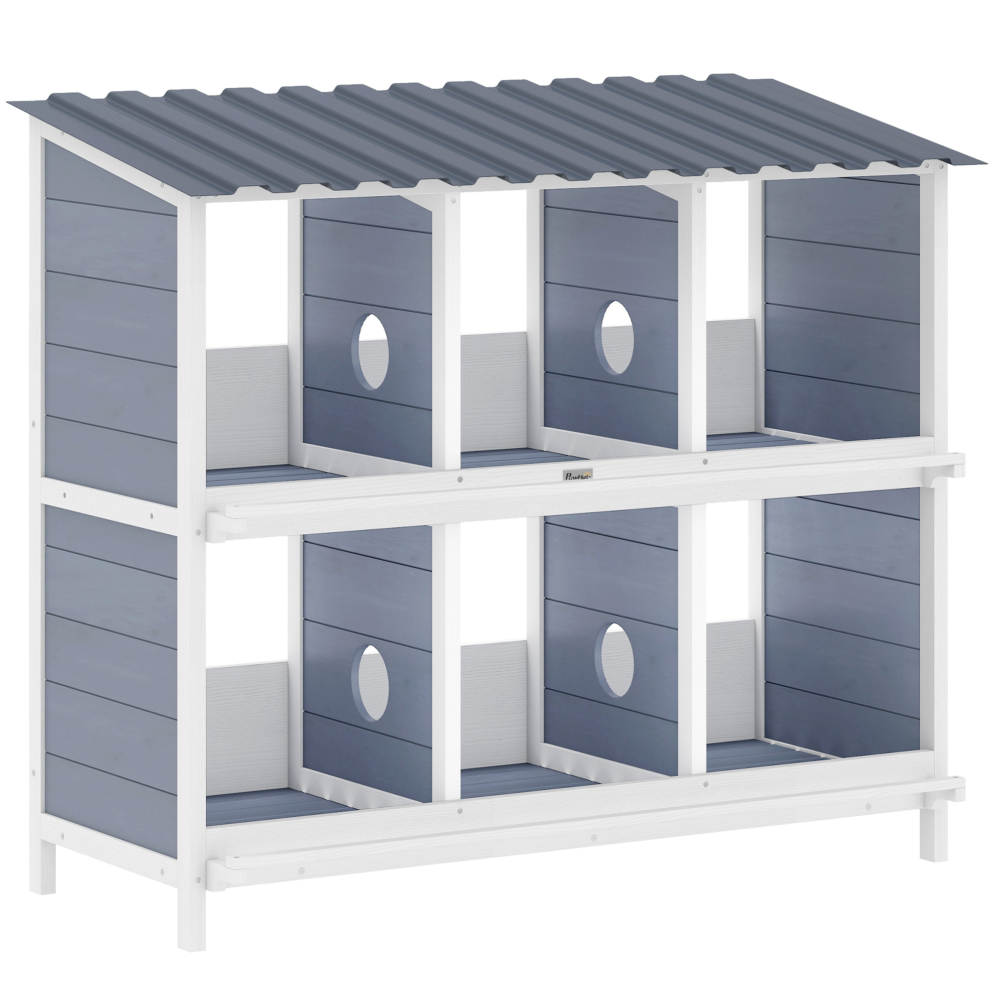 PawHut Cuib pentru găini, cuib ridicat din lemn cu 6 compartimente, 4 bârne pentru coteț pentru animale mici 102 x 50 x 91 cm, Gri | Aosom Romania